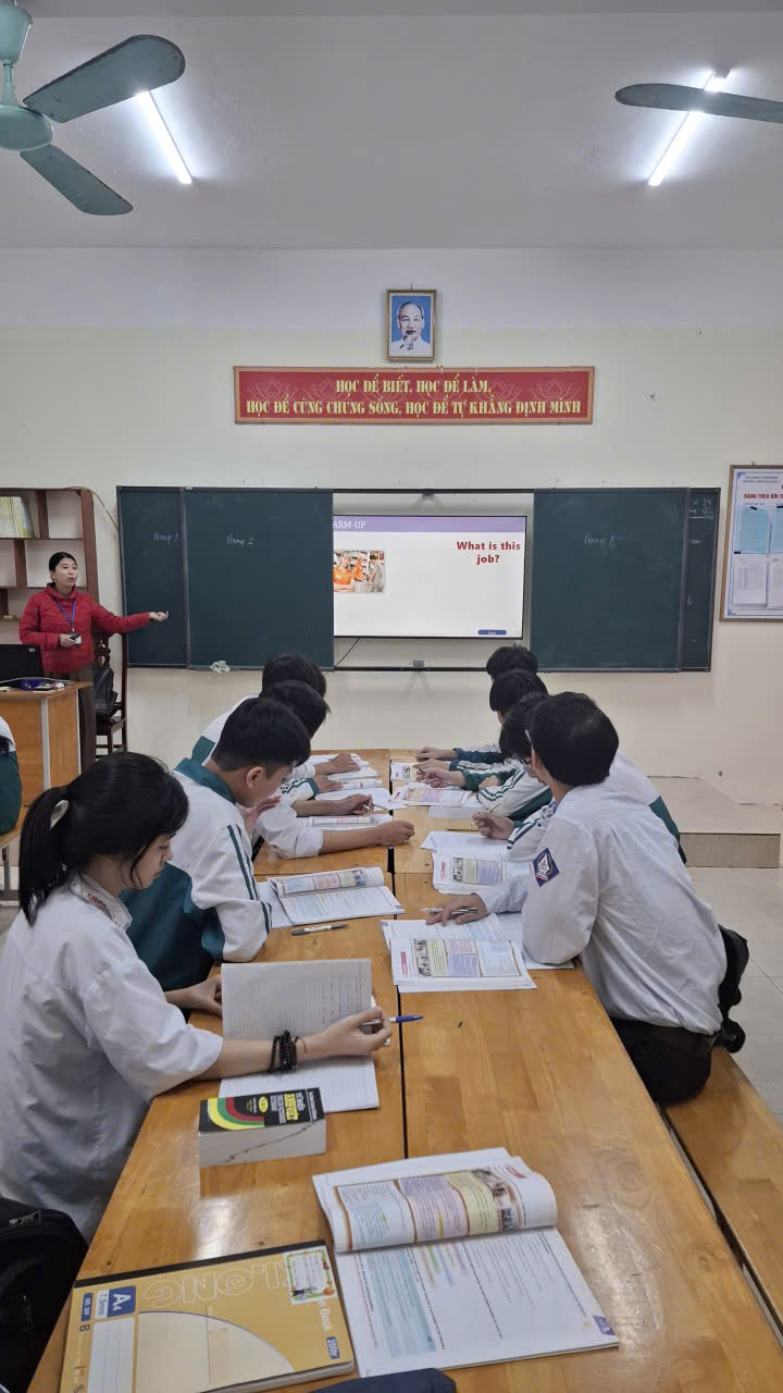 Trong quá trình đọc, giáo viên tổ chức linh hoạt các hoạt động như đọc lướt tìm ý chính, đọc chi tiết để trả lời câu hỏi và xác định thông tin cụ thể. Học sinh được rèn luyện các kỹ năng đọc quan trọng, đồng thời mở rộng vốn từ vựng liên quan đến nghề nghiệp, môi trường làm việc và yêu cầu của thị trường lao động hiện nay. Việc kết hợp hiệu quả giữa làm việc cá nhân, cặp đôi và thảo luận nhóm đã giúp học sinh tự tin chia sẻ quan điểm, nâng cao khả năng giao tiếp bằng tiếng Anh.