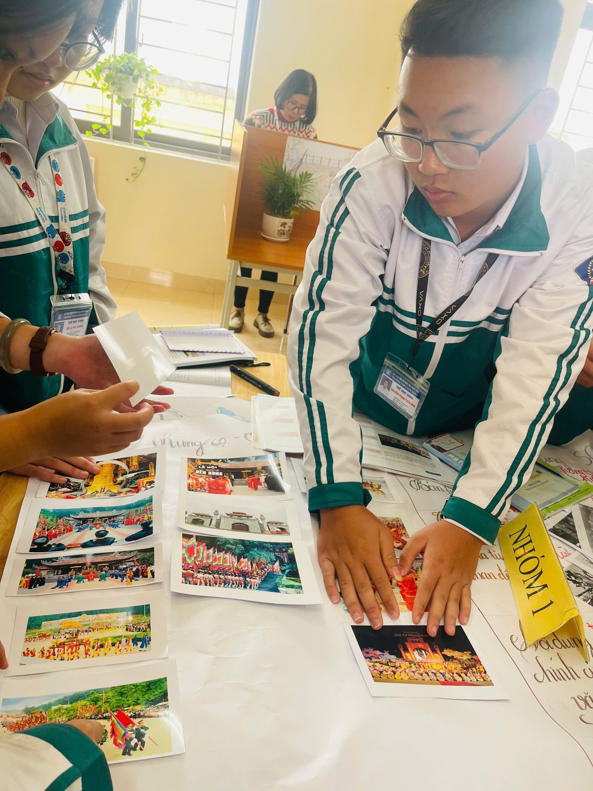 Tại thư viện nhà trường, giáo viên tổ chức cho học sinh chủ động tìm kiếm, lựa chọn và xử lí thông tin từ nhiều nguồn tư liệu phong phú như sách giáo khoa mở rộng, sách tham khảo, tài liệu lịch sử – văn hóa, địa chí, tranh ảnh, bản đồ và học liệu số. Qua đó, học sinh không chỉ tiếp cận kiến thức một cách đa chiều mà còn được rèn luyện kỹ năng tự học, kỹ năng đọc hiểu, phân tích, tổng hợp thông tin.