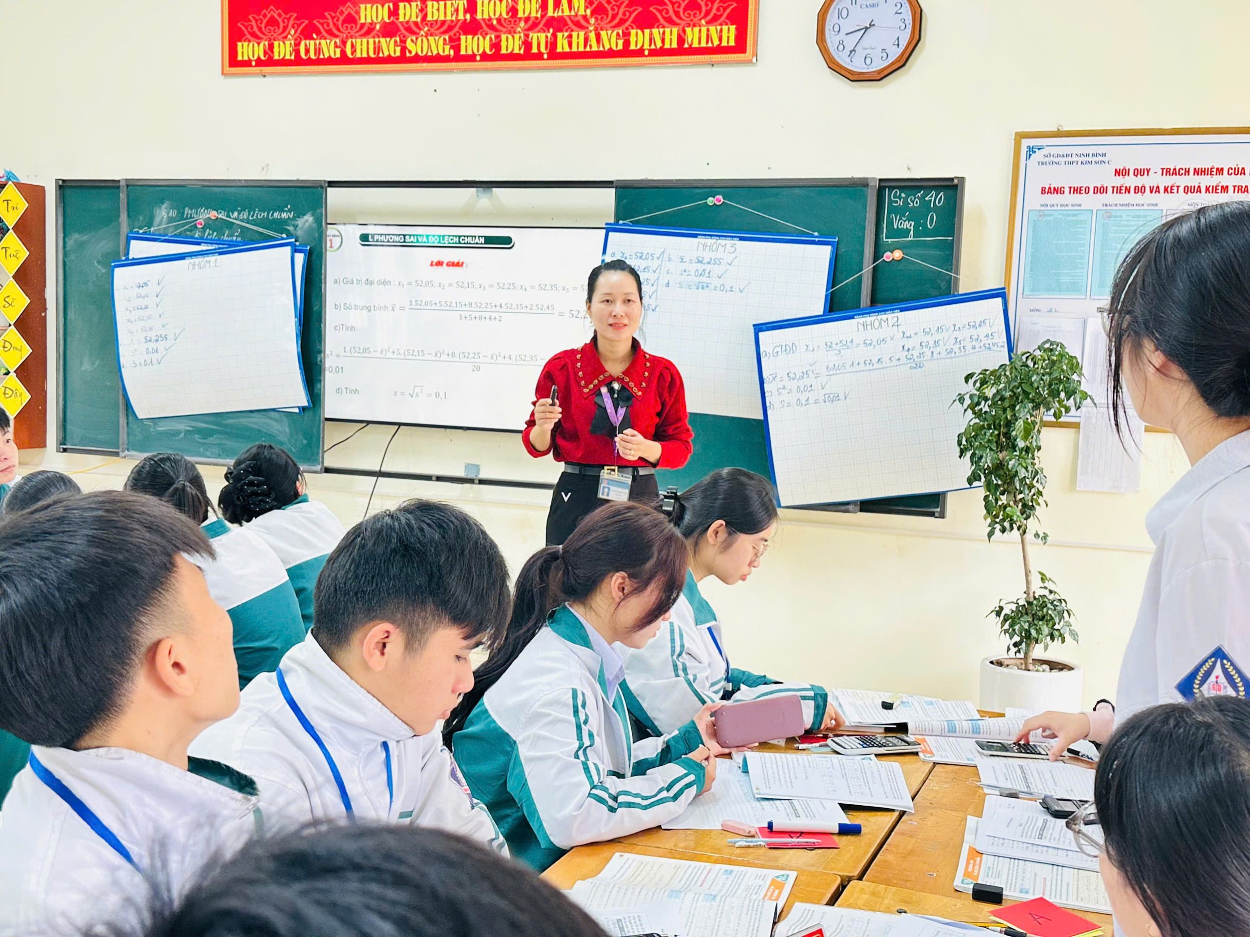 Mở đầu chuỗi các hoạt động dự giờ, thăm lớp là tiết dạy của cô Nguyễn Thị Bích Ánh tại lớp 12B với bài “Phương sai và độ lệch chuẩn”. Thông qua các ví dụ gắn với dữ liệu thực tế, học sinh được dẫn dắt để hiểu rằng trong cuộc sống, không phải lúc nào con số “trung bình” cũng phản ánh đúng bản chất của một vấn đề. Việc xem xét mức độ phân tán, sự chênh lệch giúp con người đánh giá chính xác hơn chất lượng, mức độ ổn định và rủi ro – từ đó đưa ra những quyết định hợp lý trong học tập, công việc và cuộc sống. Tiết học vì thế không chỉ rèn luyện kỹ năng tính toán mà còn hình thành cho học sinh tư duy phân tích và đánh giá thực tiễn.